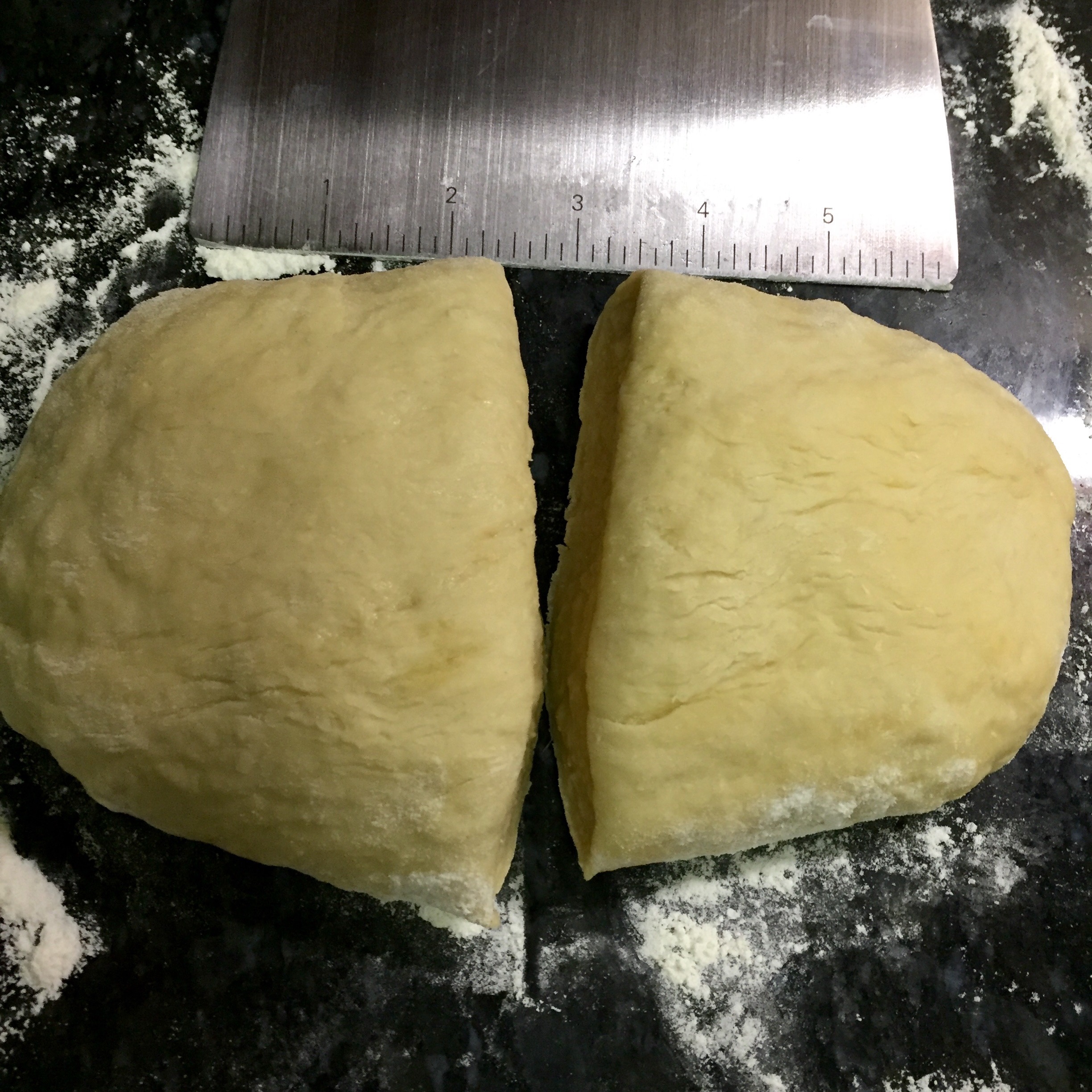 - Divide into two, one portion slightly bigger than the other, make each portion into a ball.
