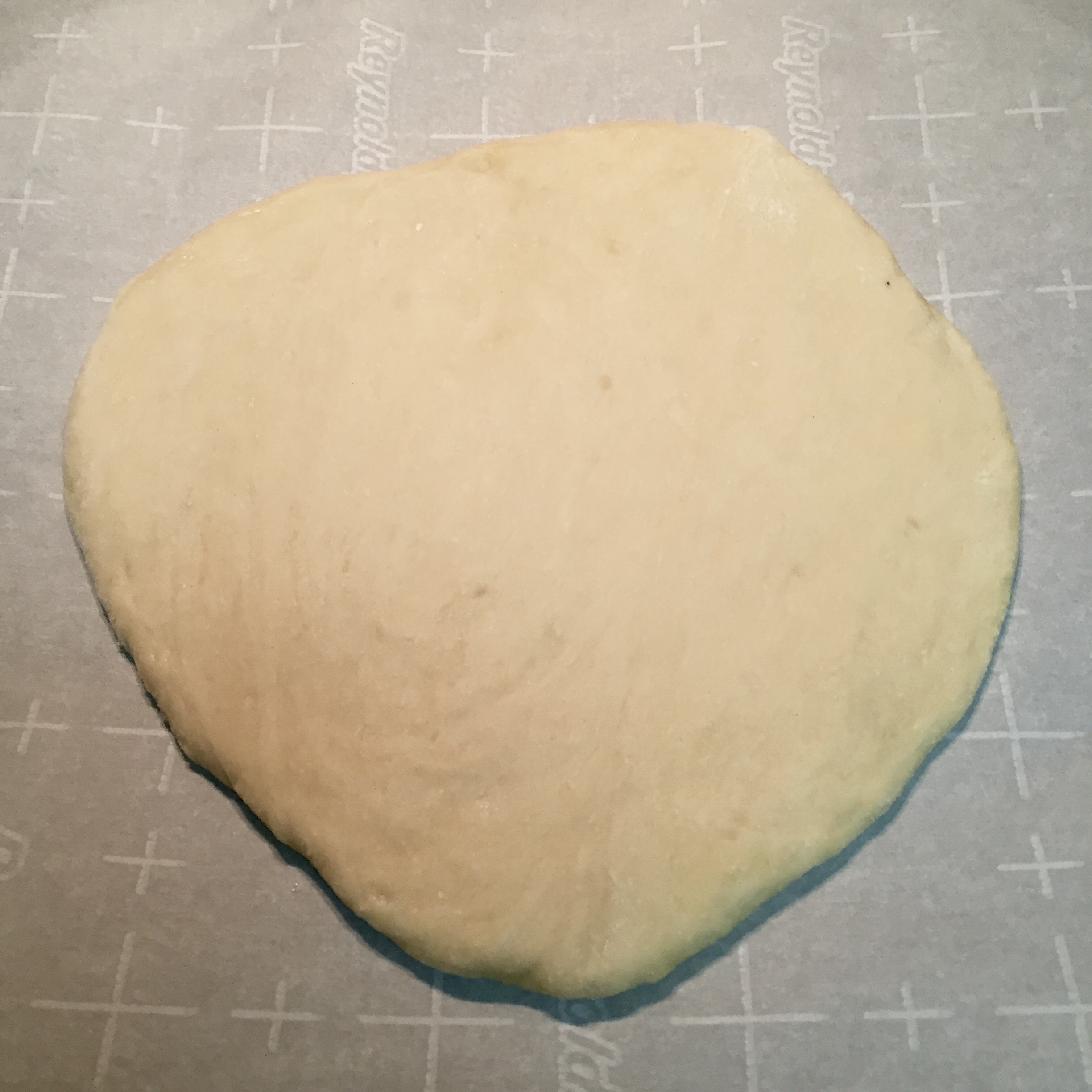 - now roll the bigger portion to same thickness, this circle should be bigger than the first one.