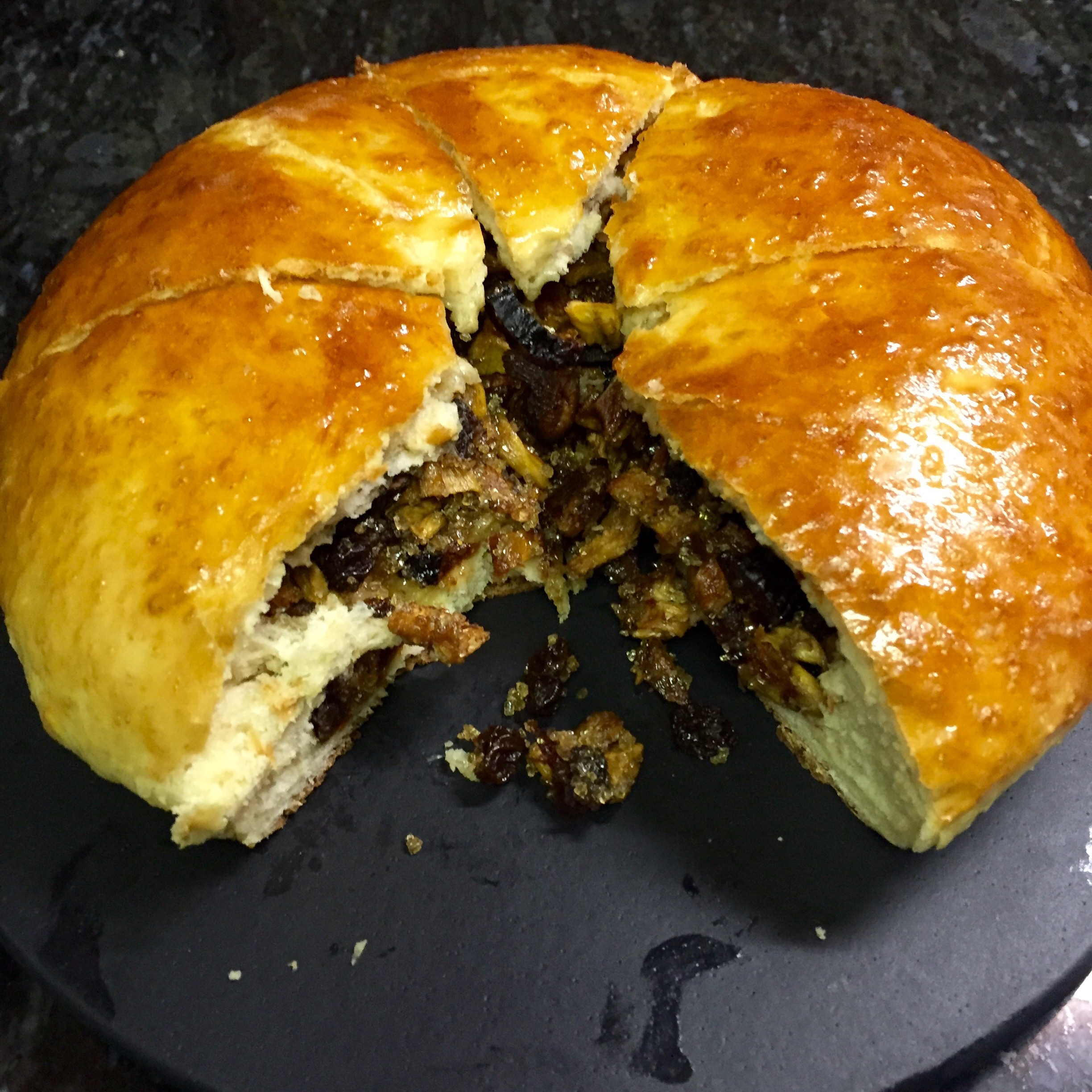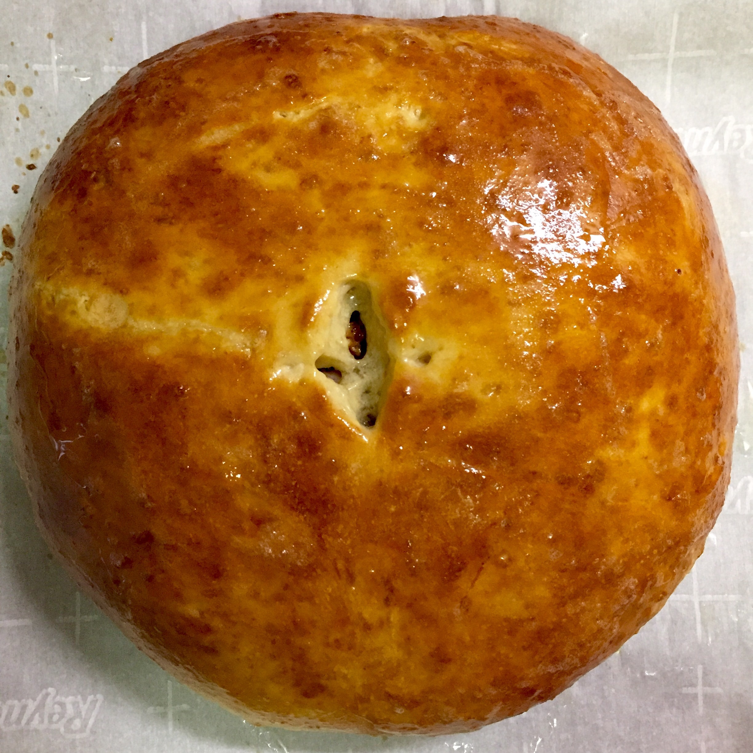- Once proofed, cut the vents on top (I used a sharp scissors to make the X mark), brush the top with egg white and bake for 20 mins or till the top is golden brown.